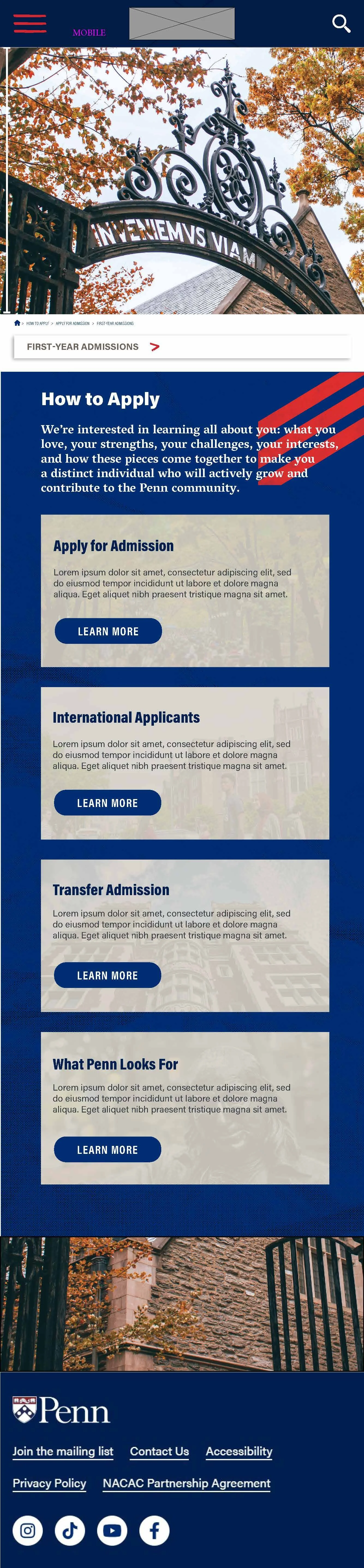 Penn’s Admissions site is one of the first stops for thousands of prospective students and families. The old site was cluttered, hard to navigate, and not mobile-friendly. We needed a redesign that would make information clear, accessible, and welcoming—while reflecting Penn’s brand and values.